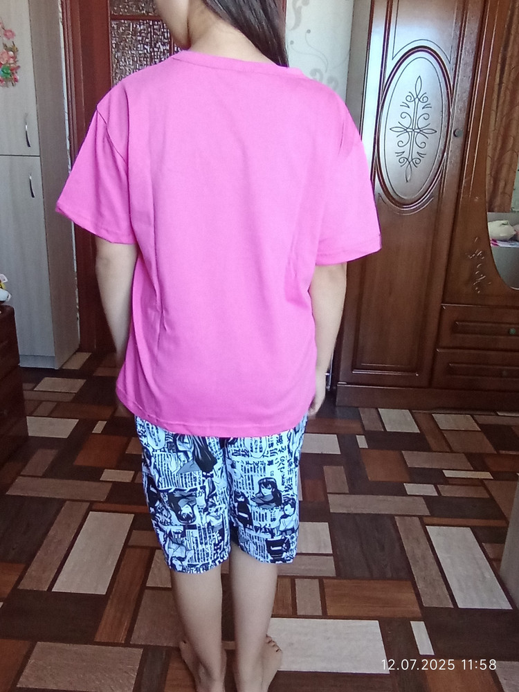 Костюм х/б. Яркий, после стирки не полинял. Футболка оверсайз.