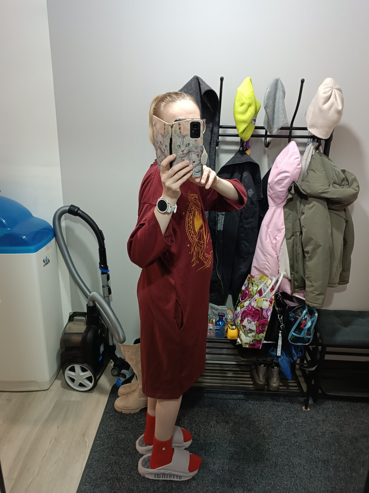 Для меня слишком большой размер, и даже как "оверсайз" не применить именно в моем случае - плечи и карманы на тунике уползли вниз, видно, что для меня огромный размер.